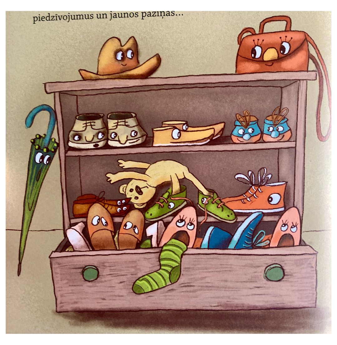 Once upon a time there was a little sandal called Kreisiņa. And like all sandals, shoes and other footwear, she had a little sister named Labiņa. But once, it happened that Kreisina was left all alone on the street. Sports shoes rushed by and business shoes walked nobly, but no one wanted to help the little sandal... Will Kreisina manage to get home? Will the serious and a little scary policeman's boots help her?